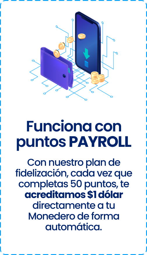 Por cada 50 puntos que acumules, te acreditamos $1 dólar en tu monedero automáticamente.